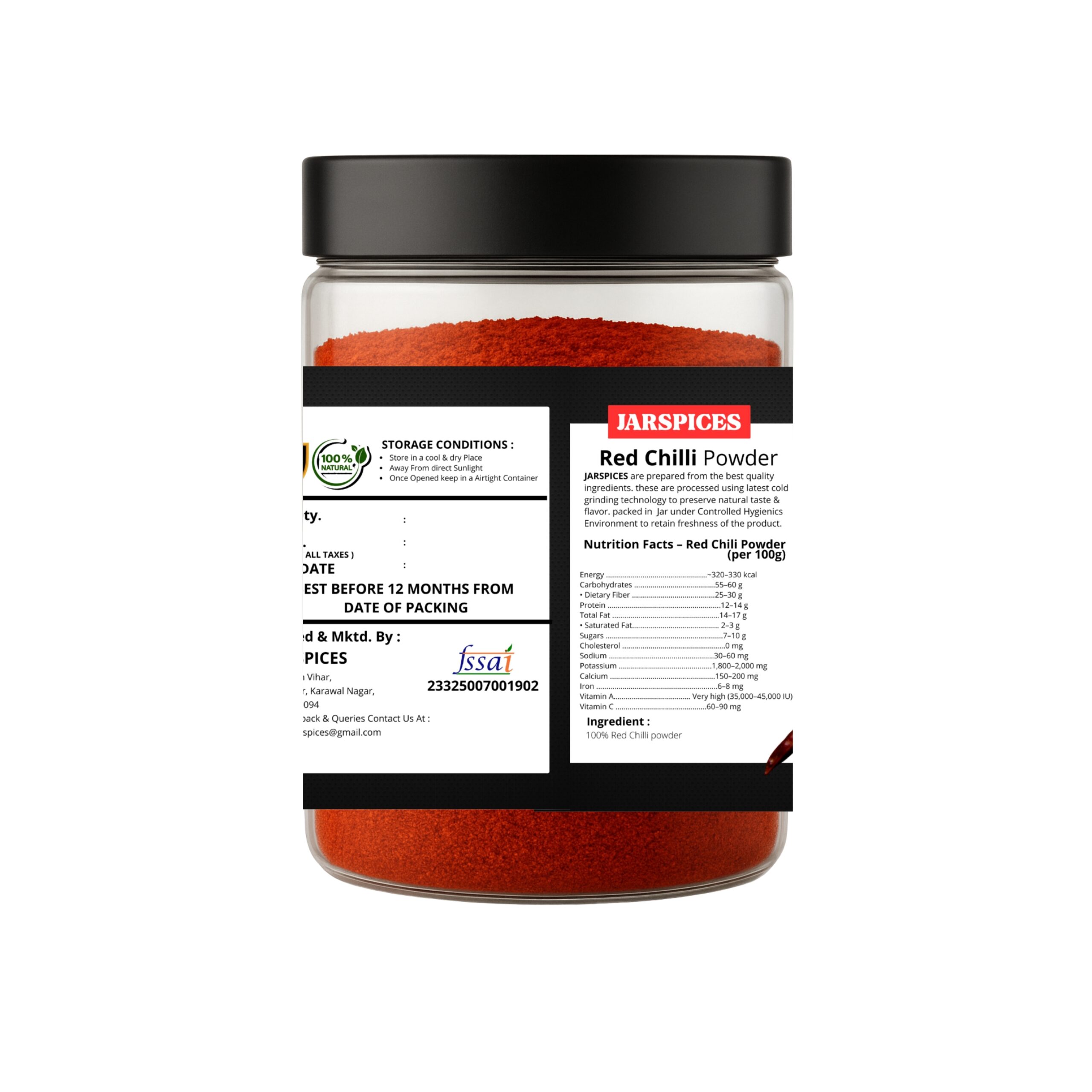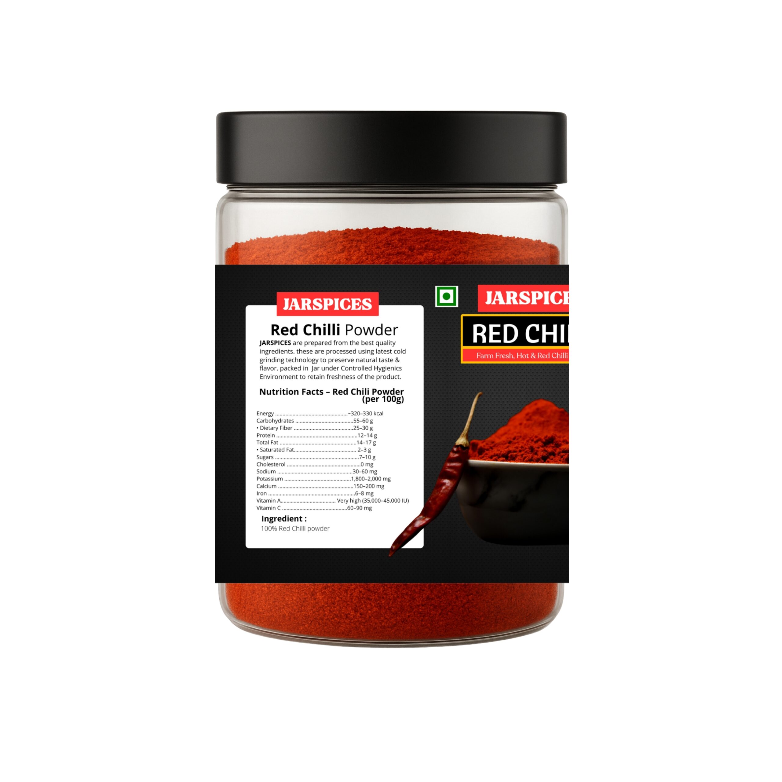 Bring home the fiery essence of India with Jar Spices Red Chili Powder β made from premium-quality, sun-dried red chilies sourced directly from trusted farms.